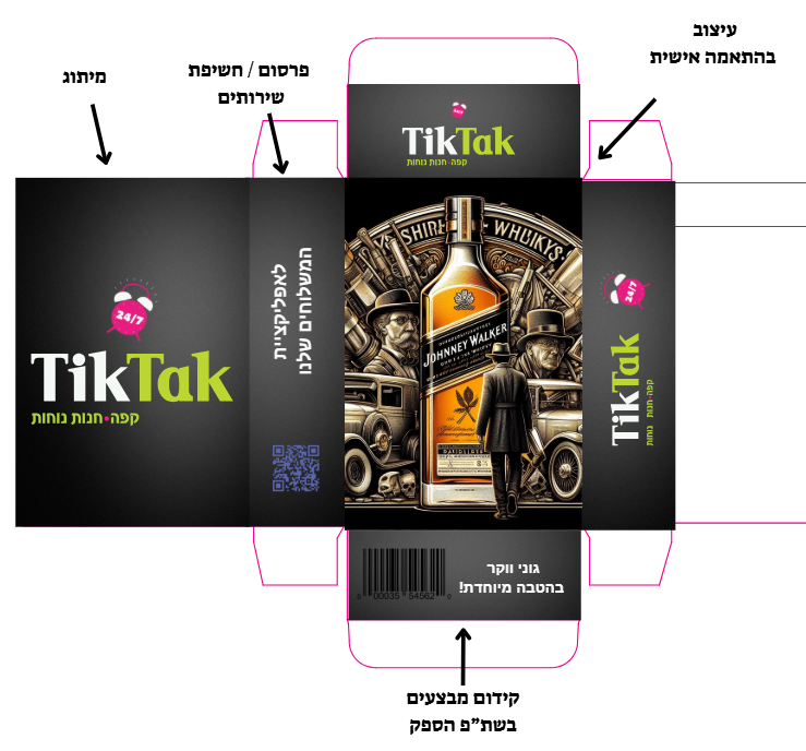 חיפויים מעוצבים שיווקיים ממותגיםבהתאמה אישית לעסק שלך "כי כל חיפוי הוא גם פלטפורמה למסר, מבצע או מיתוג ייחודי" דברו איתנו על מיתוג ייחודי אנחנו באתר In-Box.co.il מנגישים לך פתרון מיתוג חדשני, מקורי, זמין ולא יקר. חיפויים מעוצבים לקופסאות הסיגריות שאתה מוכר ללקוחותיך. חיפויים אלו ימתגו ויבדלו את החנות שלך, יקדמו מבצעים וישאירו רושם על כל לקוח. היתרונות וערך המוסף לעסק שלך - מיתוג ופרסום דינאמיהפרסום והמיתוג על החיפויים עובד בשבילך במשך כל יום כל היום קידום מבצעים ושירותיםיכולת לקדם מבצעים וחשיפת שירותים חדשים העברת מסריםהעברת מסרים וערך מוסף ללקוח מקסום רווחיםמקסום רווחים בכל אותה פעולת מכירה הערך המוסך ללקוחות שלך - חיפוי מעוצב וייחודיחיפוי מעוצב ומסר שהלקוח מזדהה אתו שכבת מגןשכבת הגנה נוספת למניעת מעיכות הטבה / הנחה למימושהלקוח נהנה מהטבה או הנחה למימוש בקניה הבאה דוגמאות מוכר קופסאות סיגריות בעסק שלך? - תממש את האפשרות למקסם רווחים, לפרסם ולמתג בו זמנית לחץ כאן למה דווקא חיפוי מעוצב לקופסת סיגריות? הלקוח פותח את הקופסה לפחות 20 פעמים ביום החיפוי נחשף בסביבה הקרובה, בין 15-25 איש בכל יום נחשפים לחיפוי. קופסת סיגריות הוא מוצר שנרכש באופן יומיומי ע"י קהל מגוון. מכאן ניתן להסיק – מדובר בשטח פרסום אישי ונייד שמסתובב ברחבי האזור שלך במשך כל היום כל יום. השלבים הבאים לקידום הזמנה - שיחת היכרות תיאום צרכים ושפת המותג של העסק שלך עיצוב גרפי בהתאמה עיצוב והדמיה של חיפוי שיווקי ממותג בהתאמה לעסק שלך. אישור וביצוע הזמנה לאחר אישור מתחילים לעבוד ולייצר בהתאם לסקיצה המאושרת. ייצור משלוח ואספקה משלוח ואספקה 7 – 28 ימי עבודה *משתנה בהתאם להזמנה מעוניין בחיפויים שיווקיים בהתאמה אישית לעסק שלך? השאר פרטים ואנחנו ניצור אתך קשר בהקדם אני מעוניין בהצעה מותאמת