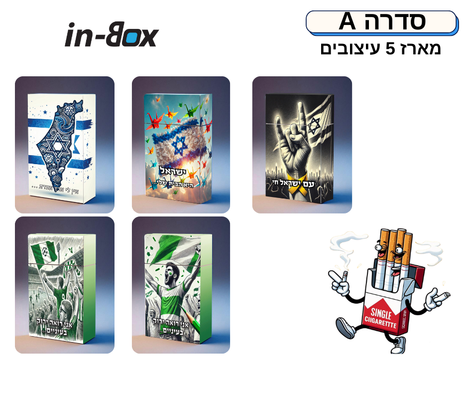 - העיצובים נשלחים באופן רנדומלי בהתאם לעיצובים המוצגים בתמונות המוצר